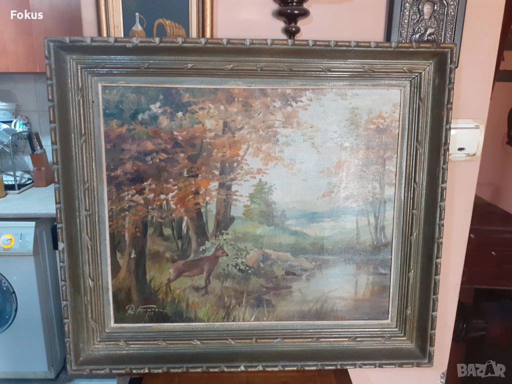 Стара авторска картина масло, платно, подпис, дървена рамка → Обява 53353846