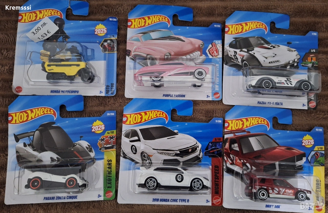 Предлагам Hot wheels колички.Цена за брой-1,53€