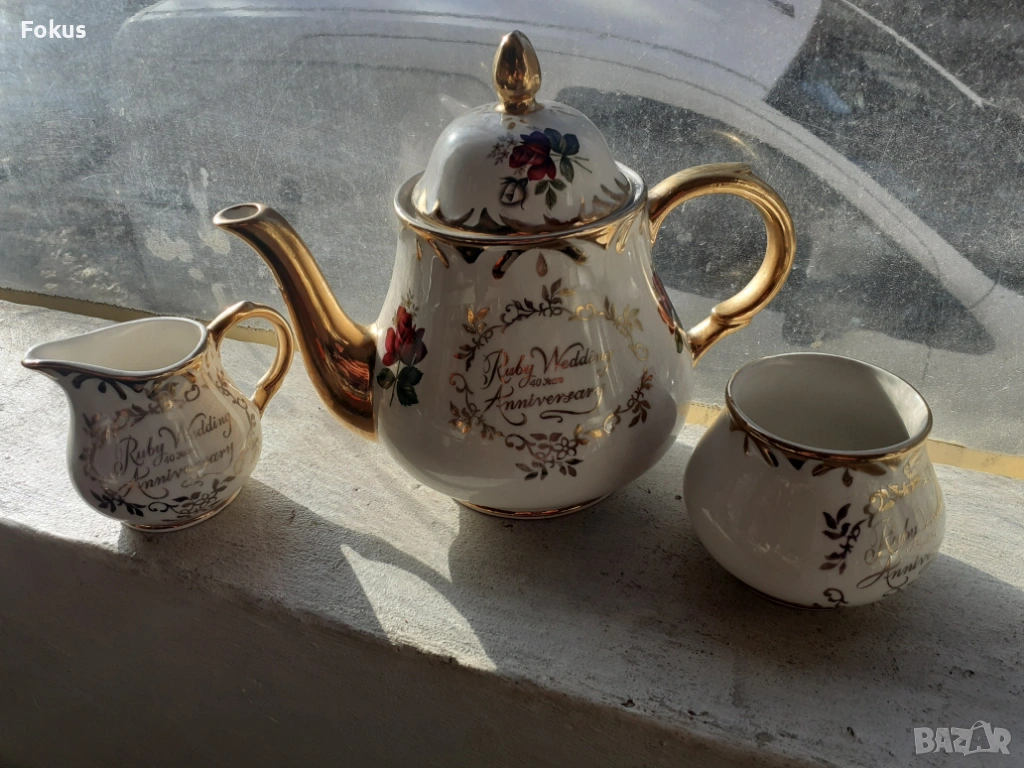 Английски порцелан сет за чай със дебела позлата → Обява 53353938