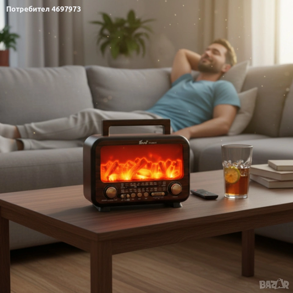 Соларно преносимо радио FP-2393-S - тип камина с горящи пламъци