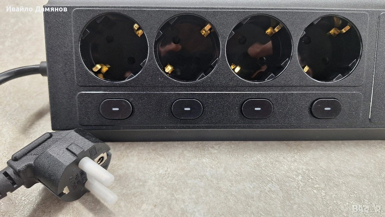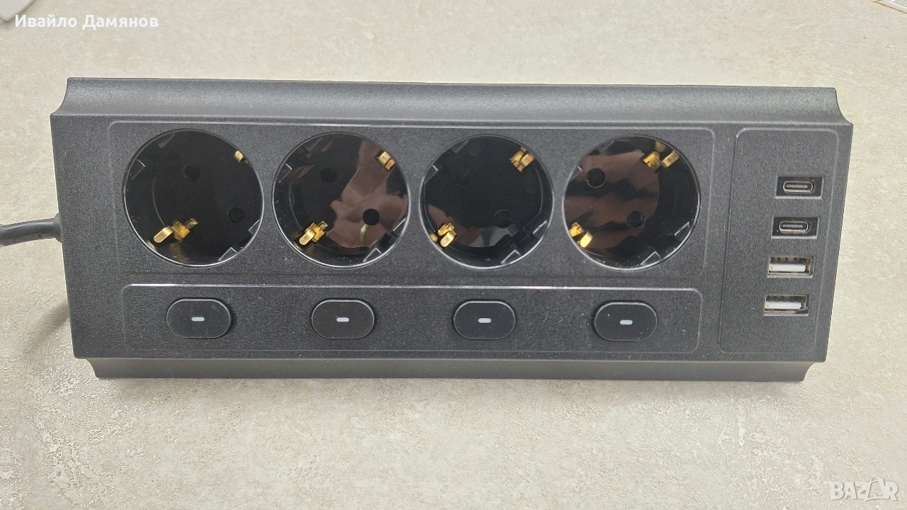Разклонител за електрическа мрежа с множество функции. Разполага с 4 контакта тип Schuko. Има 2 USB-A порта и 2 USB-C порта за зареждане. Всеки контакт е оборудван с индивидуален ключ за включване/изключване.