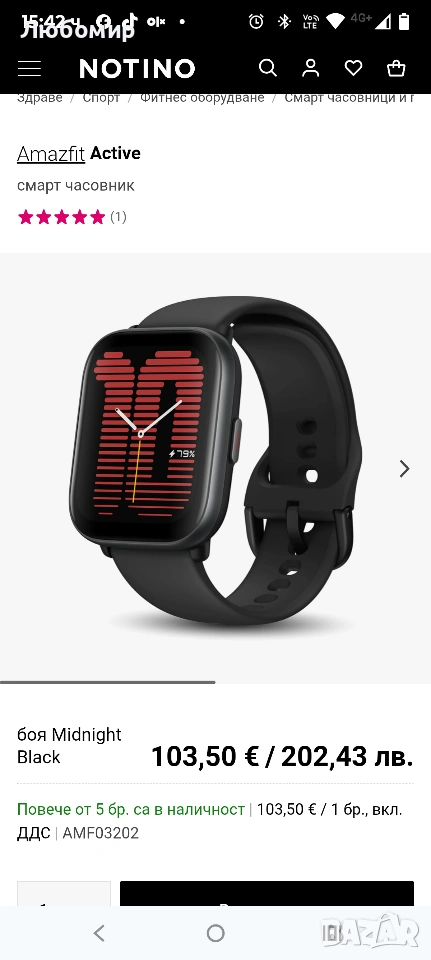 Мострен не различим от нов.Живейте със стил и никога не губете енергията си. Благодарение на интегрирания личен треньор смарт часовникът Amazfit Active се грижи за физическото и психическото състояние, предлага над 120 спортни режима и тренировъчни програми, които са изцяло адаптирани към индивидуалните нужди. Цялата важна информация е винаги пред очите ви благодарение на големия, ясен дисплей.