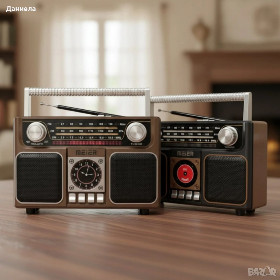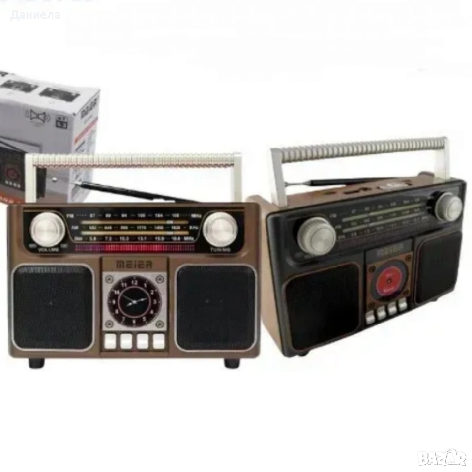 Технически характеристики на Портативно соларно радио MEIER MD-1306BT-S - Bluetooth, FM радио, МP3 плеър, USB и SD card Кратък и ясен списък с ключови параметри, които ще ви дадат реална представа какво получавате: Тип: 3-лентово радио (AM/FM/SW) Bluetooth: Да (версия 5.3) Входове: USB, SD/TF слот, AUX Възпроизвеждане: MP3 файлове от USB/SD/TF Захранване: сменяема акумулаторна батерия 18650 (1200 mAh), DC 5V Високоговорители: вградени стерео говорители Антена: телескопична външна антена Размери: приблизително 19.5 x 13 x 7 см Цветове: черен, кафяв