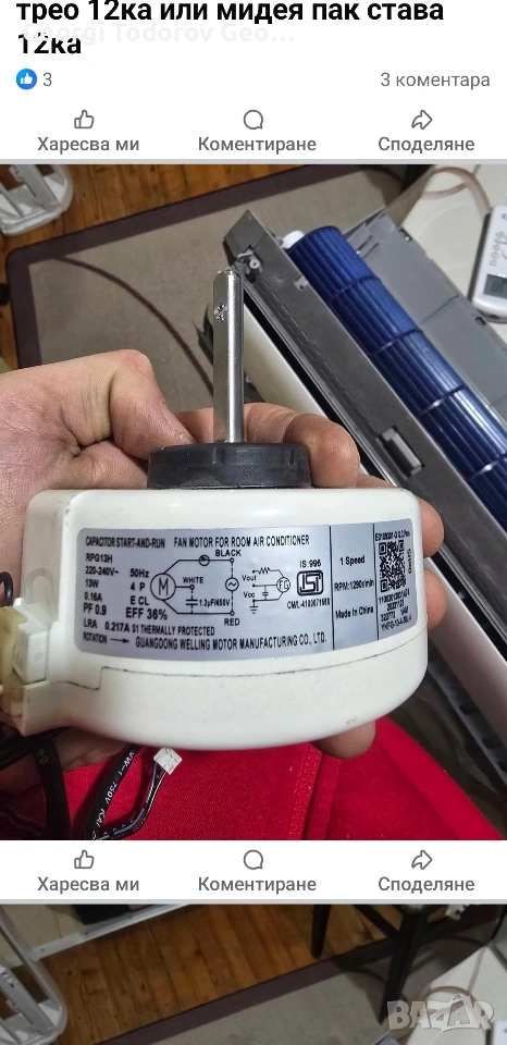 Електромотор за вътрешно тяло на климатик midea., снимка 1 - Климатици - 53354509 Електромотор за вътрешно тяло на климатик midea., снимка 2 - Климатици - 53354509 1/2