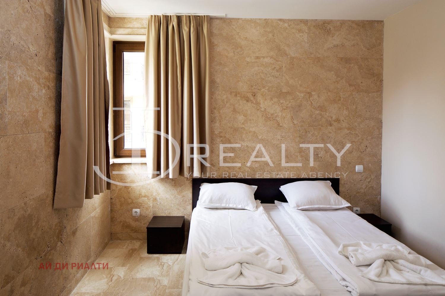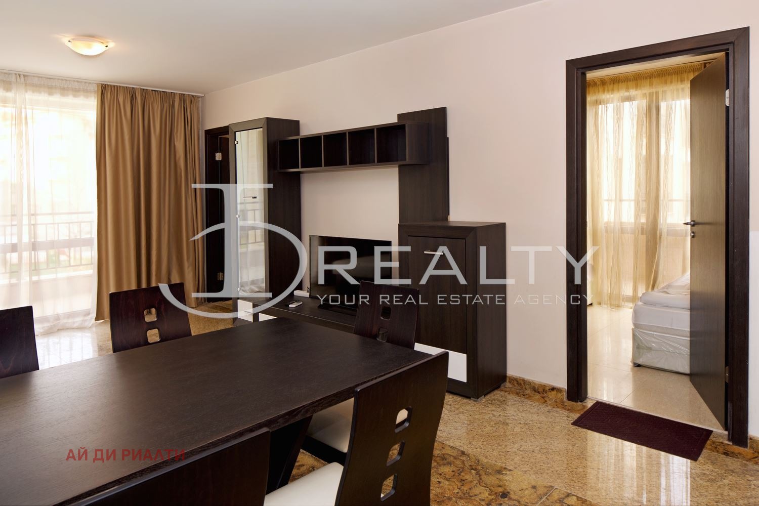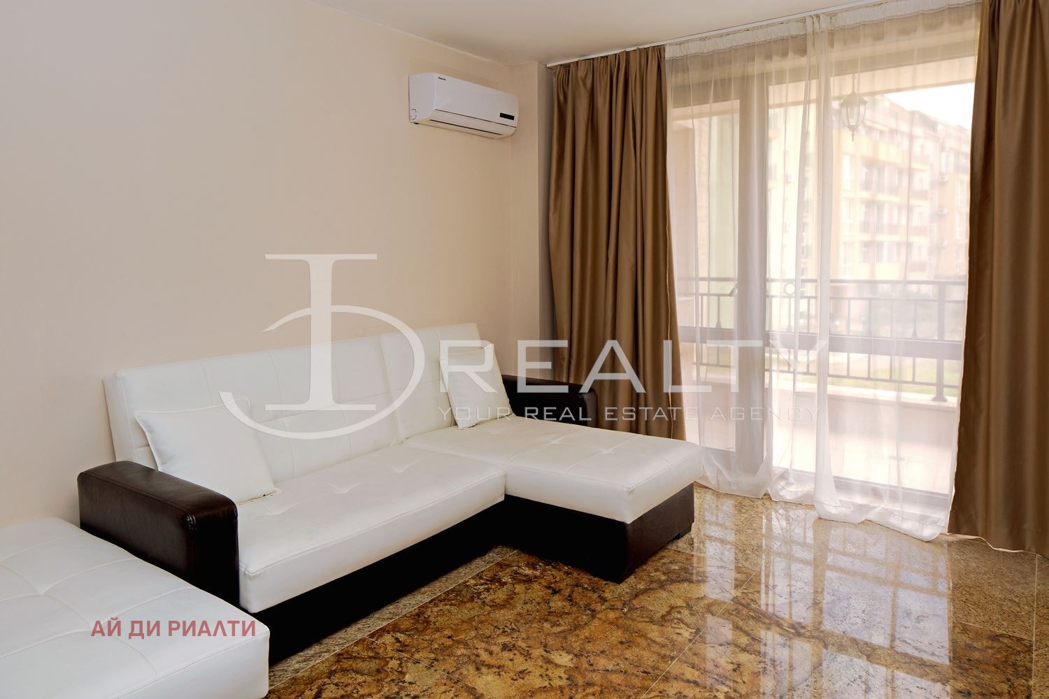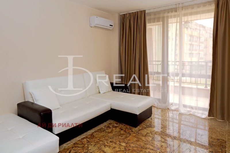 ID Realty има удоволствието да Ви представи тристаен апартамент в к.к. Слънчев бряг. Жилището състои от всекидневна с кухненски кът, две спални, баня с тоалетна и тераса. Имота се издава обзаведен с наличните мебели и оборудване. Разположен в затворен комплекс с басейн, контролиран достъп, зелени площи, АКТ 16 и асансьор. Таксата поддръжка е 8 на кв.м. на година.