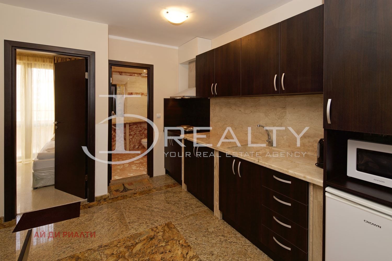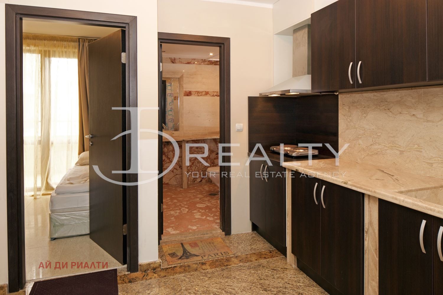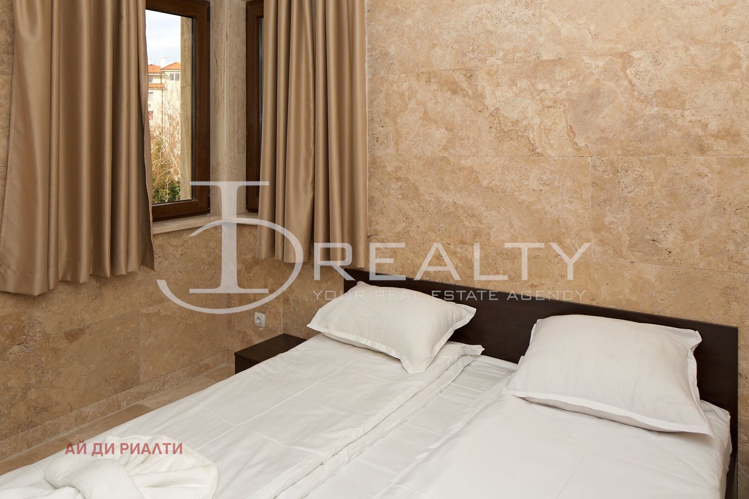 ID Realty има удоволствието да Ви представи тристаен апартамент в к.к. Слънчев бряг. Жилището състои от всекидневна с кухненски кът, две спални, баня с тоалетна и тераса. Имота се издава обзаведен с наличните мебели и оборудване. Разположен в затворен комплекс с басейн, контролиран достъп, зелени площи, АКТ 16 и асансьор. Таксата поддръжка е 8 на кв.м. на година.