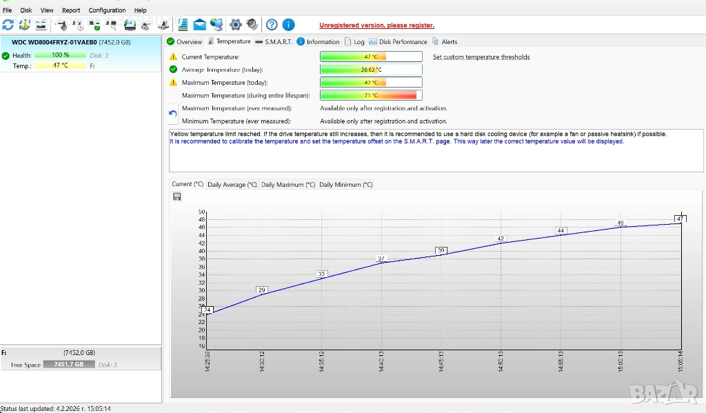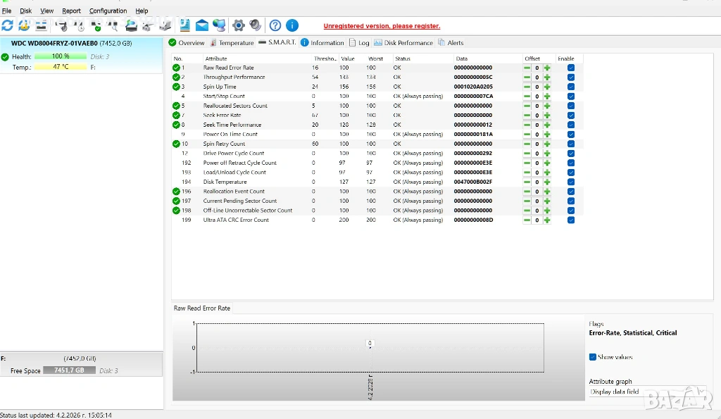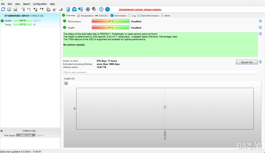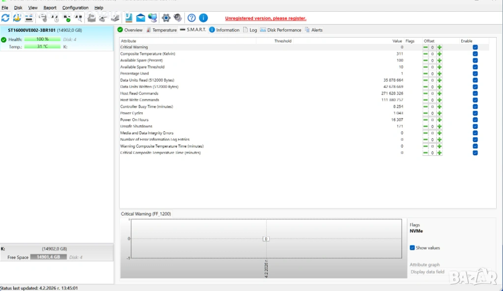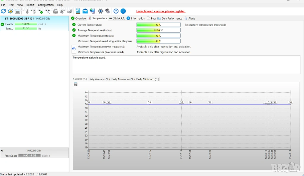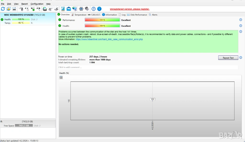 Продавам 2 използвани, но напълно изправни 3.5 HDD-та - 8TB и 16TB.Имайте предвид, че те не са съвместими с лаптопи.От прикачените снимки можете да видите, че няма лоши сектори и са в повече от добро техническо "здраве", особено като за употребявани.Посочената цена включва и двата, но ако се закупят заедно, ще можем да говорим за по-добра.При покупка на всичките 5 в двете обяви, ще има допълнителна корекция на крайната цена.