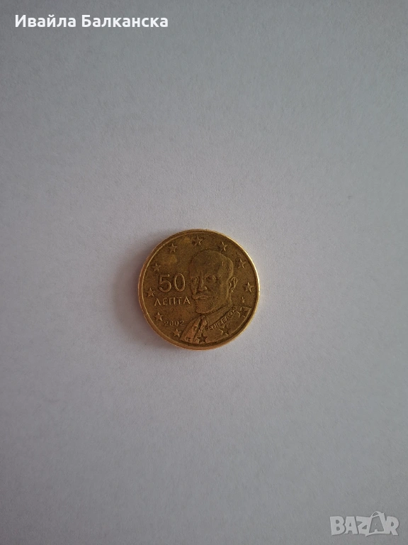 Монетата е гръцка монета от 50 евроцента от 2002 г.