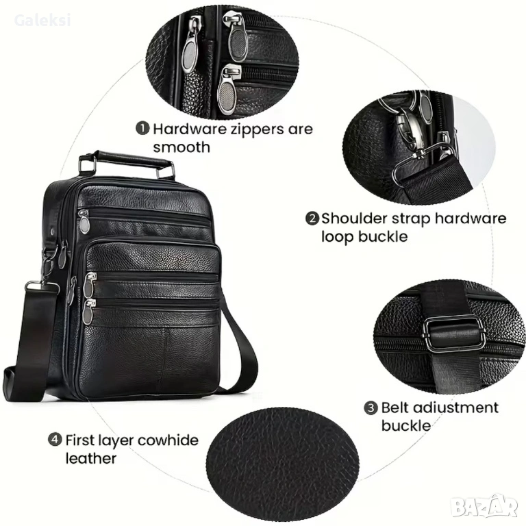 Многофункционална с 5 модерни ципа, луксозен хастар, удобна достъпност и стилно излъчване + пет практични отделения (две основни).