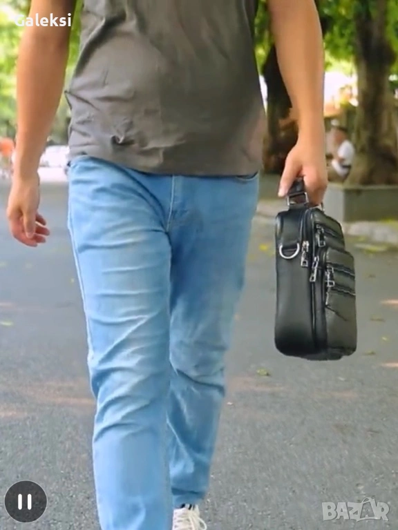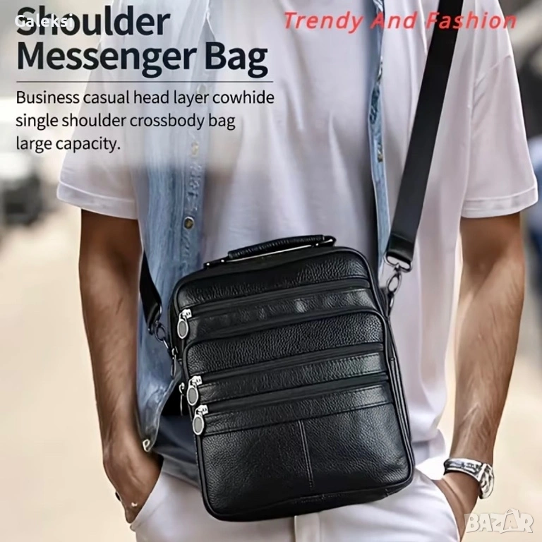 Мъжка дизайнерска ежедневна и стилна чанта с ципове /Кафява естествена кожа!