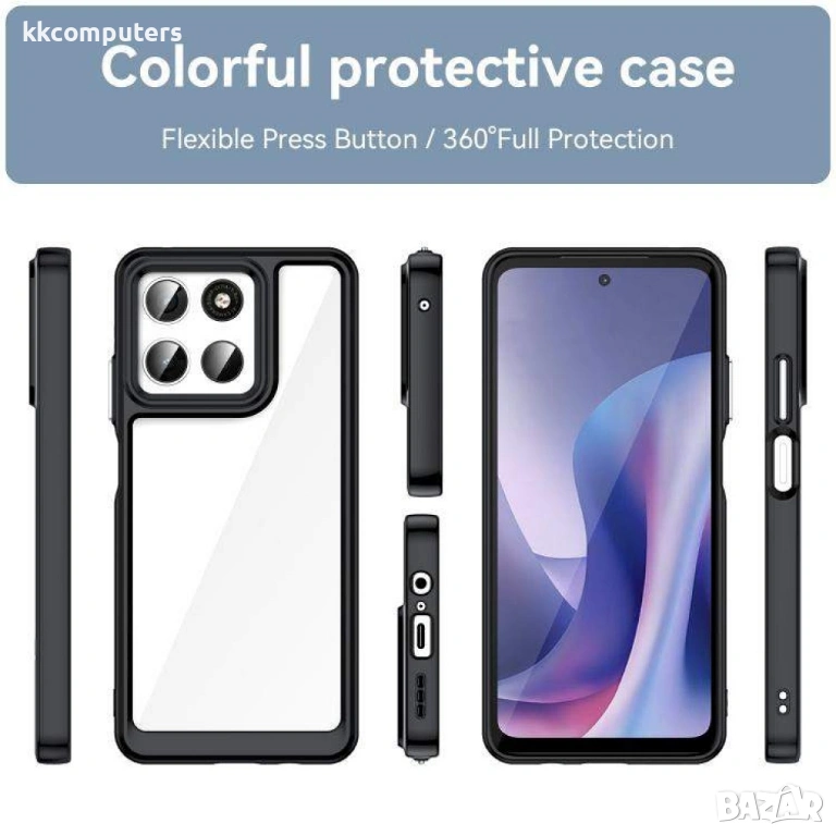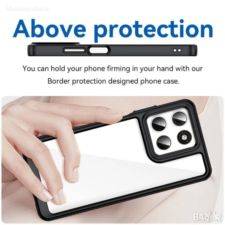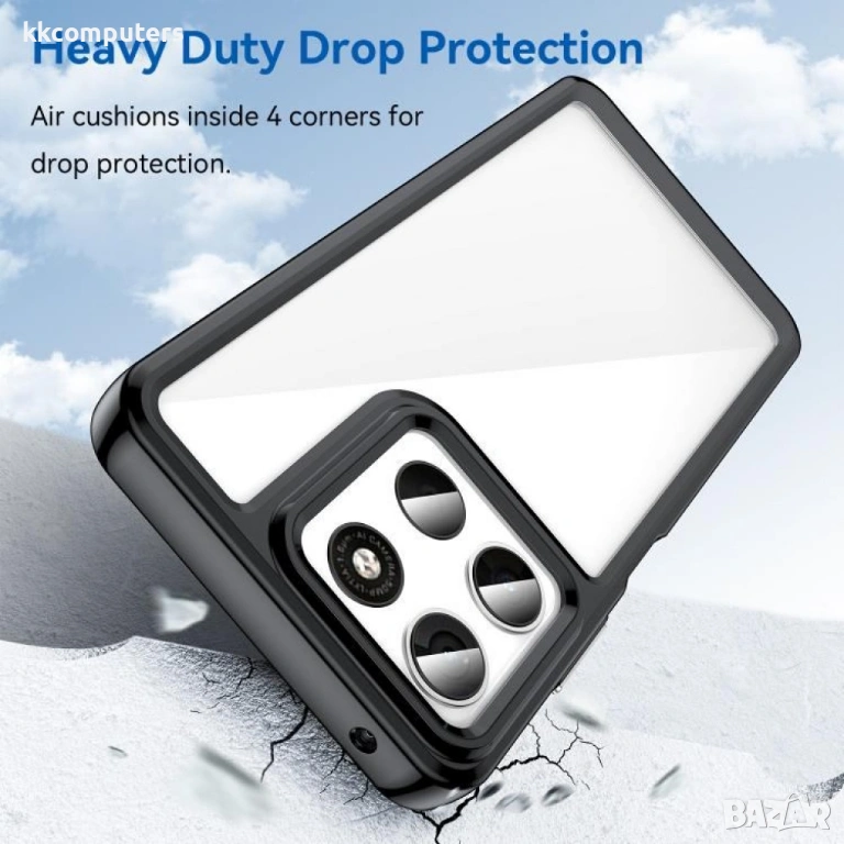 Прозрачен дизайн с акцентирана цветна рамка: Кристално прозрачният акрилен гръб показва оригиналния вид на телефона, докато цветната TPU рамка добавя стилен и модерен акцент по ръба, персонализирайки външния вид.