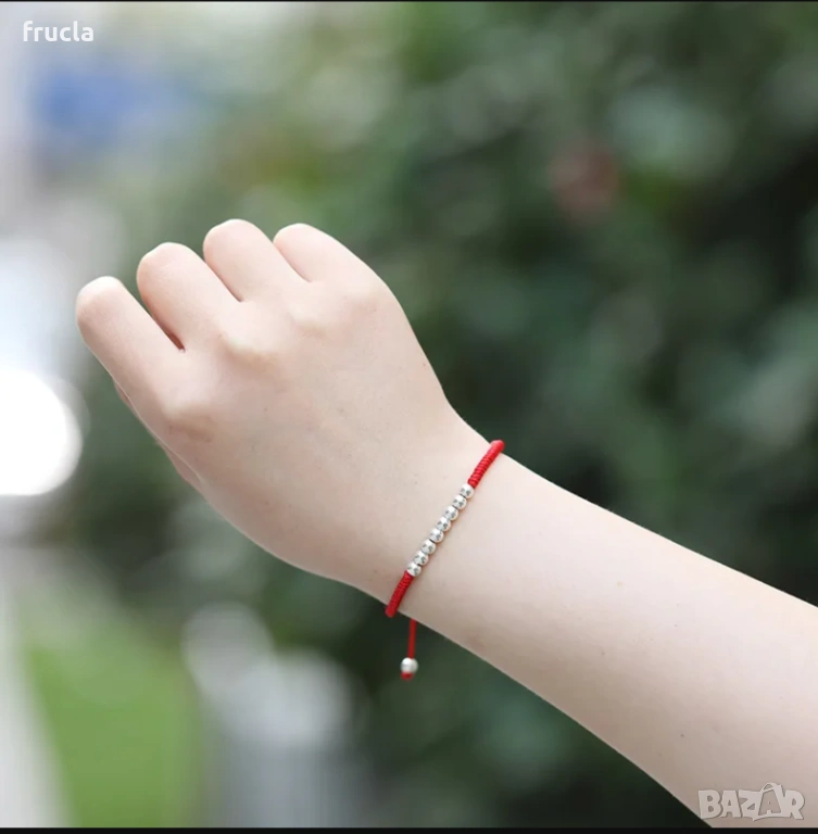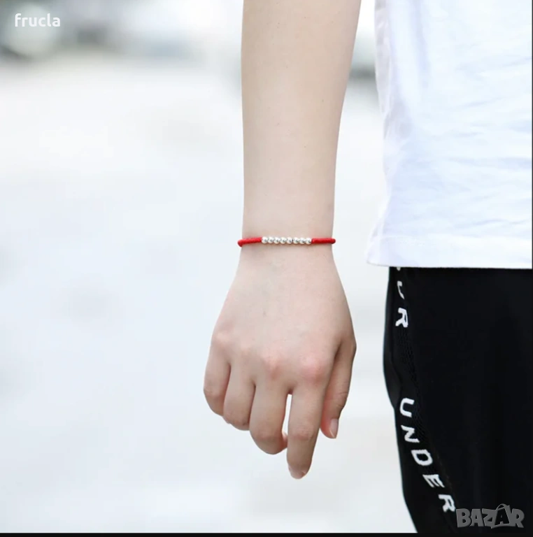 Червен Конец Със сребърни топчета против уроки → Обява 53355045