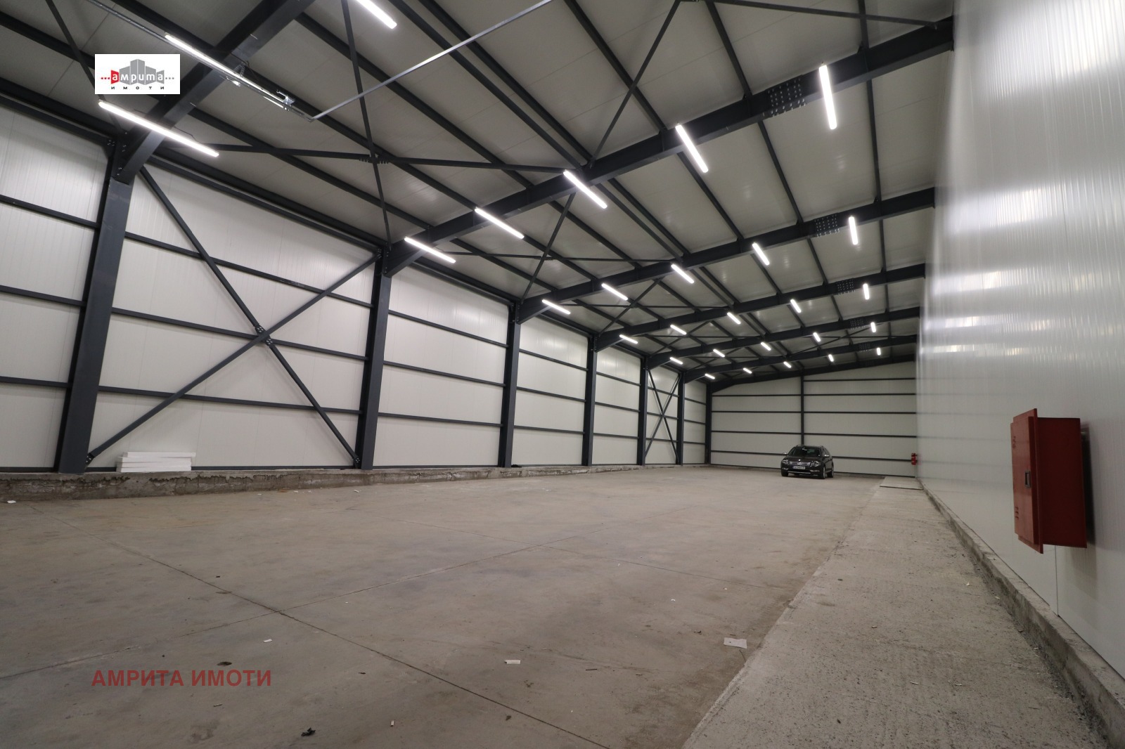 Предлагаме СКЛАД В1 с обща застроена площ от 434,82 кв.м, изграден с метална конструкция и термопанели, с височина до кота било 5,50 м.