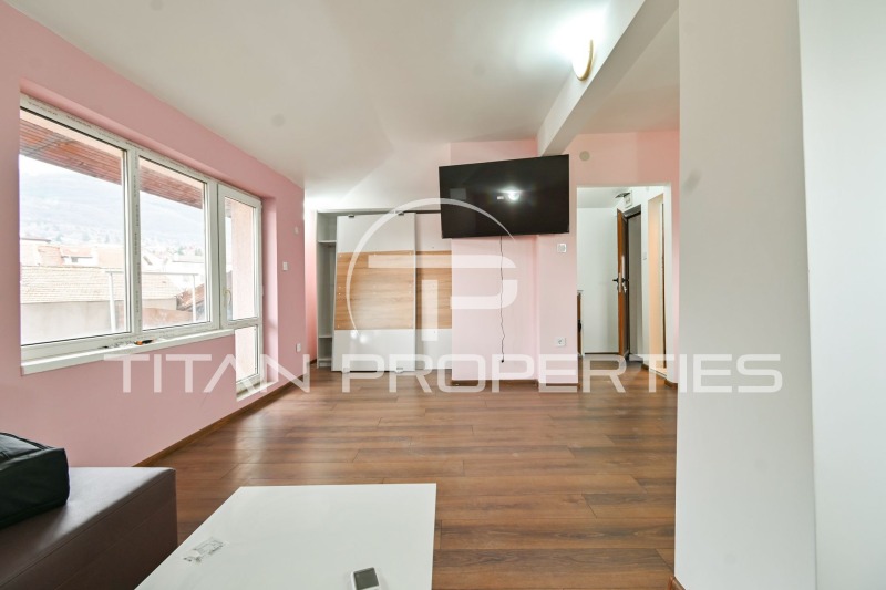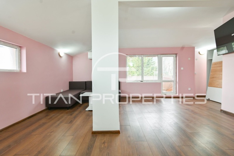 Tитан Пропъртис - офис бул. България има удоволствието да Ви представи етаж от къща под наем в кв.Драгалевци - комуникативно място, в близост до спирки на градски транспорт,частна детска градина,магазини и супермаркети и други удобства. Жилището е разположено на трети етаж от три етажа и разполага с площ от 35 кв.м. Разпределението както следва е: входно антре, еднопространствено помещение, баня с тоалетна и тераса. Изложението е север/юг. Отоплението е на електричество , посредством климатик. Жилището се отдава така,както го виждате на снимки.