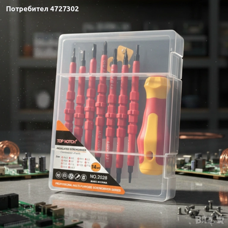 Професионален комплект двустранни изолирани отвертки с дръжка - 14в1