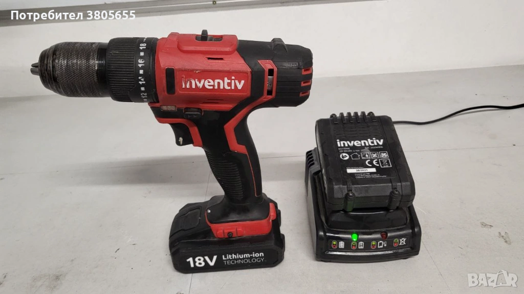 Inventiv 18V акумулаторна бормашина / винтоверт в комплект с 2 батерии и зарядно устройство.