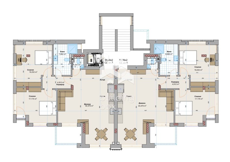 БИЛДИНГ БОКС предлага просторен 3-стаен непреходен апартамент с чиста жилищна площ от 94.30 кв.м. в нов луксозен затворен комплекс в района на 'Панчарево'.
