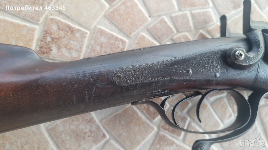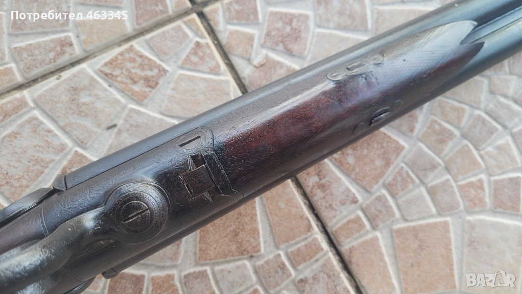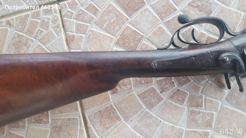 Ловна пушка, успоредка за щифтови патрони от средата на 19-ти век. Пушката е в отлично състояние. Много красиво гравирани метални части, без ръжда и без язви. Перфектна дървения без отчупено, спукано и без дървояд. Прикладът също е украсен. Механизмите работят - петлетата запъват, лостчето отваря цевите, спуска със силни бойни пружини. Перфектен колекционерски екземпляр, 100% оригинал