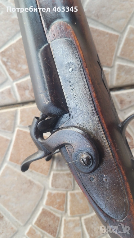 Перкусионна, британска, ловна пушка на Уилям Паркър. Маркирана. Плочките са гравирани и от двете страни. Дървенията е перфектна, без спукано, дървояд или отчупено. 100% оригинал. Наличен оригинален шомпол и затилък. Петлетата запъват и в двете положения. Чисти пистони, неизносени, неподбити. Перфектна