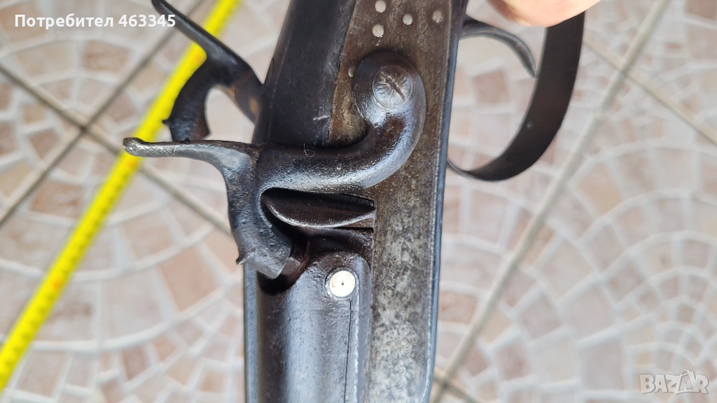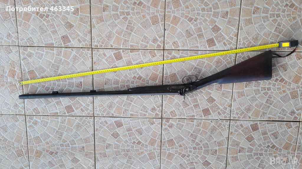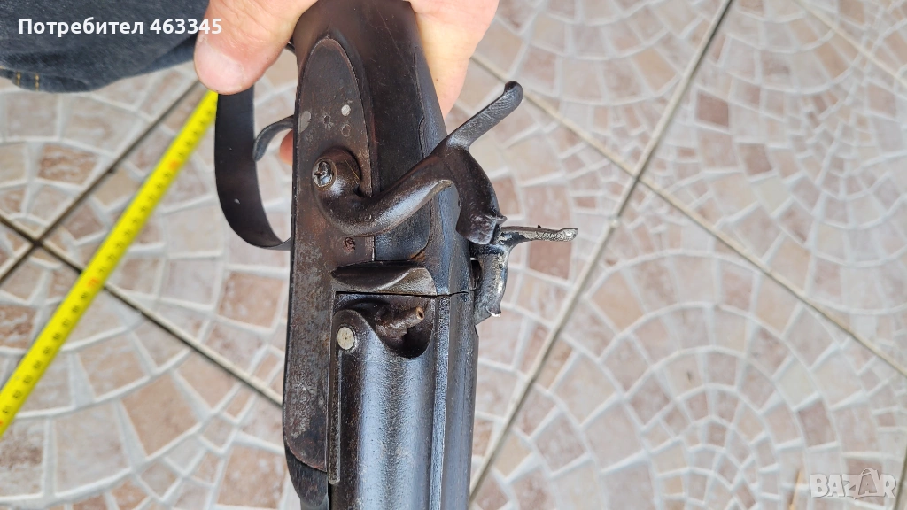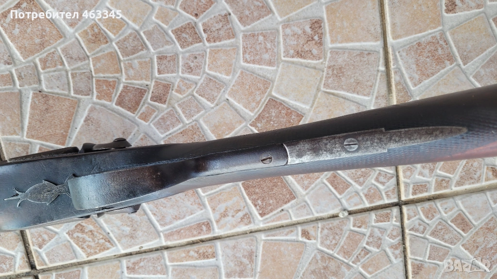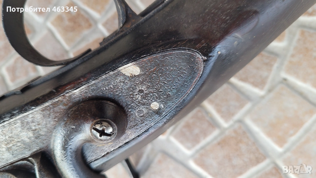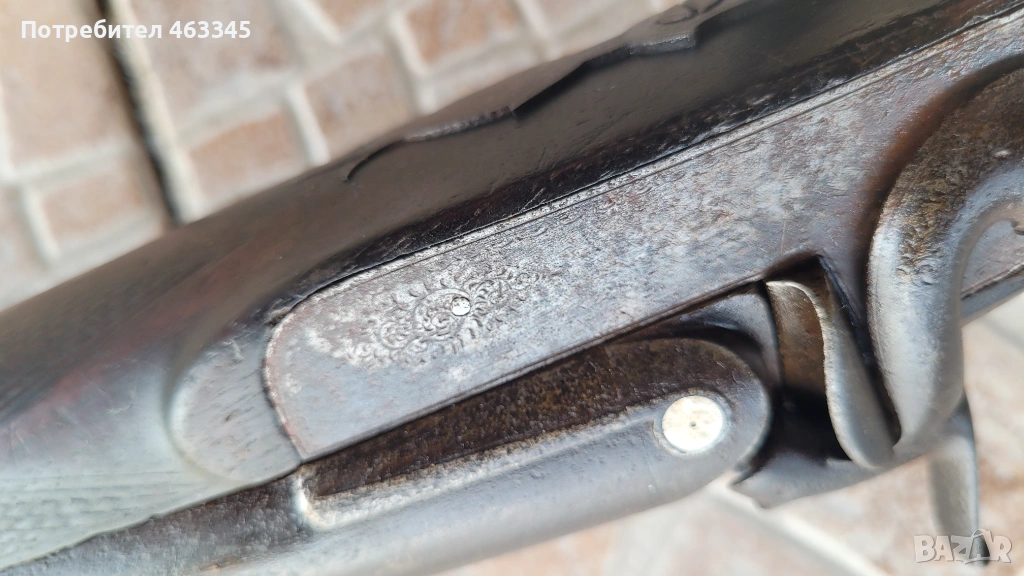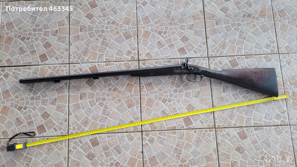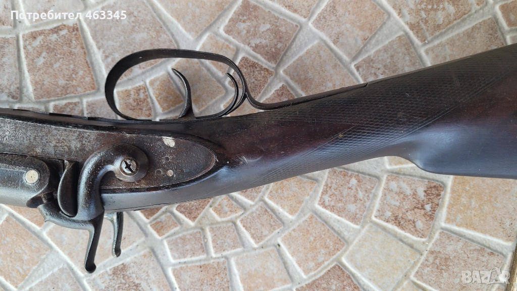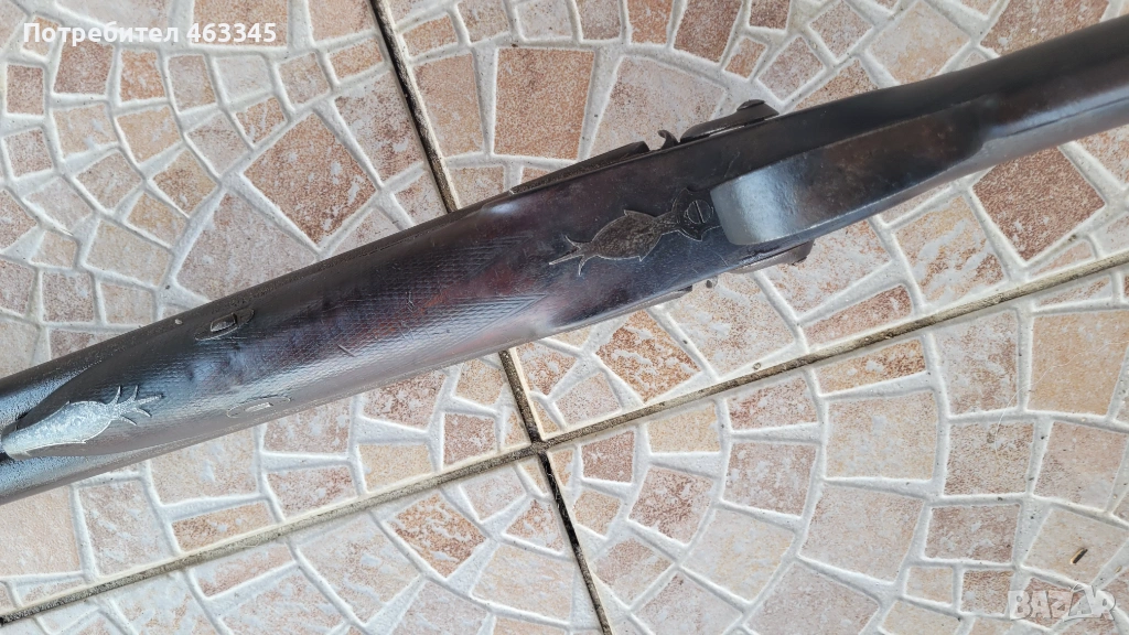 Перкусионна ловна пушка. Много красива, 100% оригинал. Шомполът липсва. Дървенията е без забележки. Металните части - също, без ръжда и без язви. Петлетата запъват и в двете положения и спускат със силни, бойни пружини. Левият курок запъва като се бута задния спусък напред. Но запъва надеждно. Добри цеви.