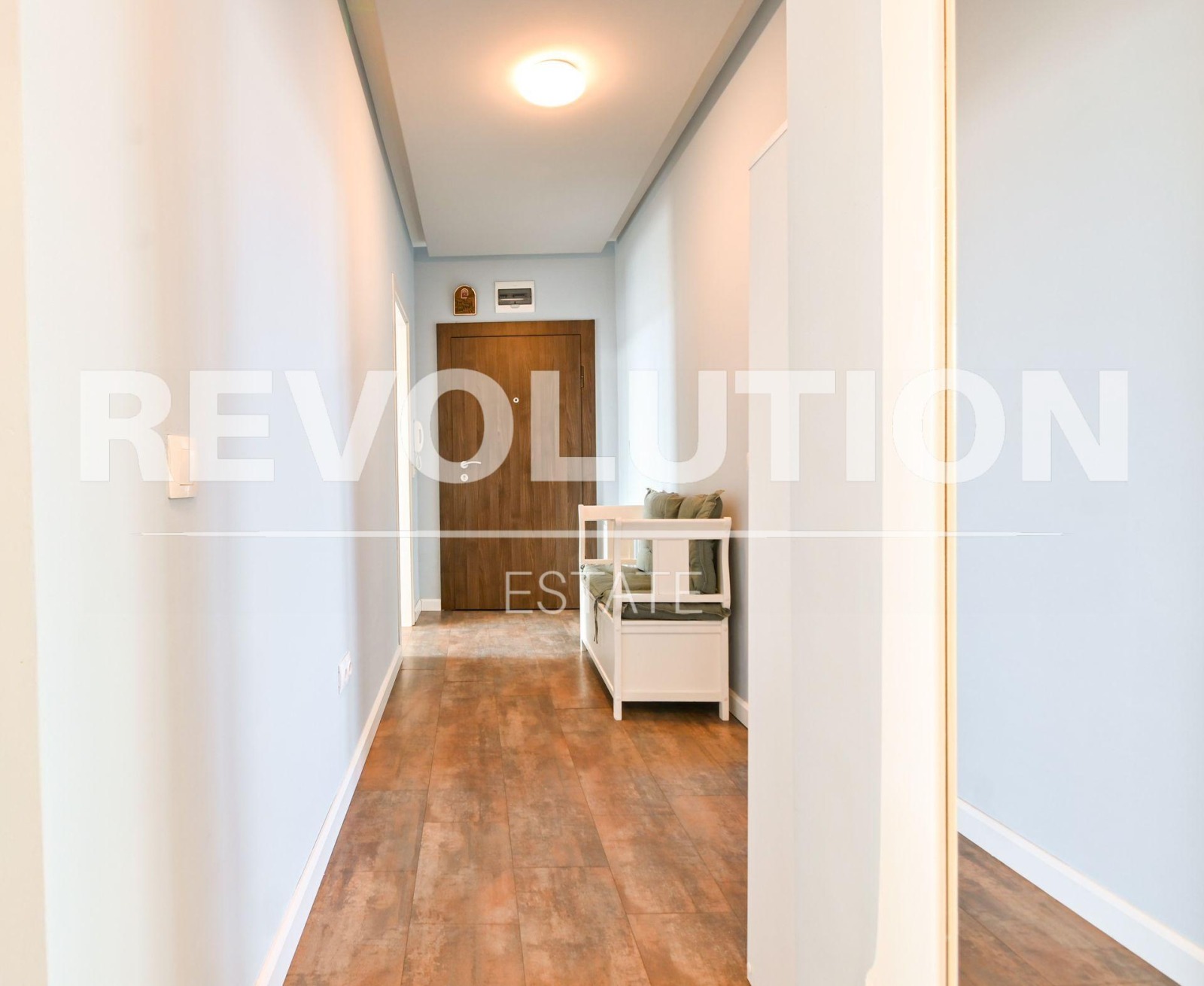 Разпределение: хол с кухненски бокс, две големи спални, баня с тоалетна, две големи тераси