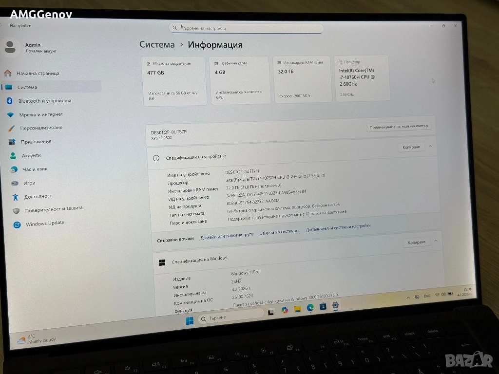 —- Dell XPS 9500 - 15.6’ UHD+ 3840x2400 Touchscreen 500nits / Intel Core i7-10750H 6-ядрен/12-нишки 12MB Cache / 32GB DDR4 3200Mhz /512GB SSD Nvme / Nvidia GTX 1650 TI 4GB GDDR6/Подсветка ——