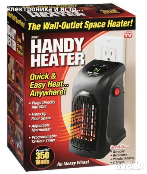 Handy Heater е уред за отопление на цялата стая, който се включва директно в контакта и не заема място. Той е достатъчно мощен, за да превърне студените пространства до 23 квадратни метра в топли и комфортни пространства.