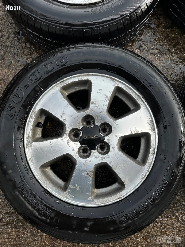 Оригинални джанти Subaru 5x100 ET48 6J + хубави гуми M+S Antares 205/70/15 ДОТ19! Без кривини, заварки и дефекти!