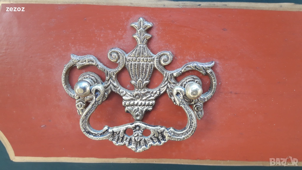 Не-много голям ретро скрин.Пълен масив.Красиви дръжки с месингов обков около ключалките.Липсва ключ.Конструктивно здрав.Забележки отстрани и чукнато ъгълче-снимано.Шкафа си носи следи от времето.Размери-