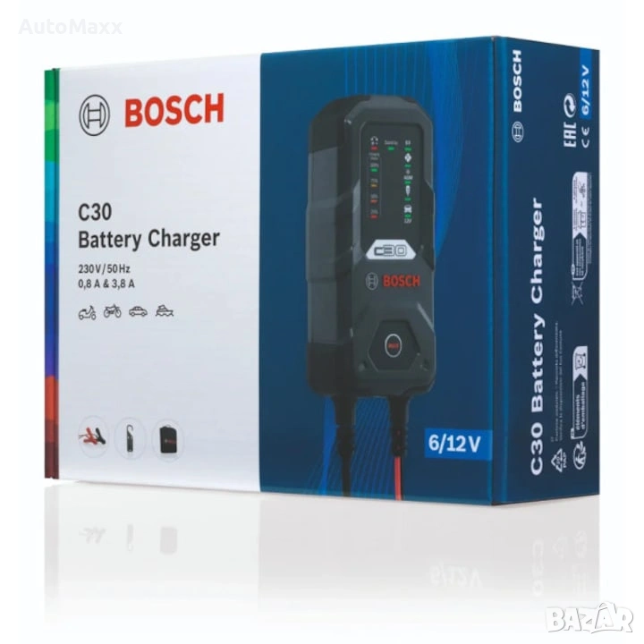 Токоизправител за акумулатор Bosch C30 6V 12V 3,8A → Обява 53355727