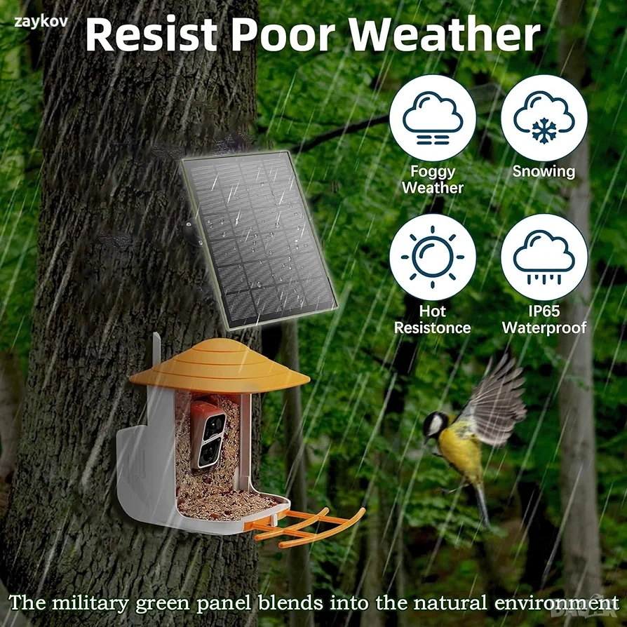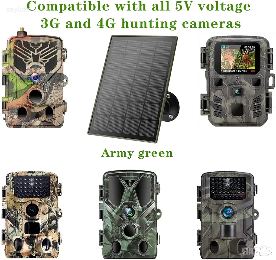 соларен панел генерира напрежение от 5V и не е съвместим с устройства 9V или 12V. 3W/5V соларен панел е съвместим с външни охранителни камери и камери за наблюдение на птици (3G и 4G Trail cam), с 3-метров DC (3.5*1.35) кабел за зареждане и Type-C и Micro адаптери, 3 опции за захранване на интерфейса, камери с по-широко приложение. Съвместим с повече от 96% от марките 5V 3G и 4G ловни камери на пазара, за Birdfy Feeder Camera или други камери за хранене на птици. Също така е широко съвместим с 5V камери за наблюдение с ниска мощност.