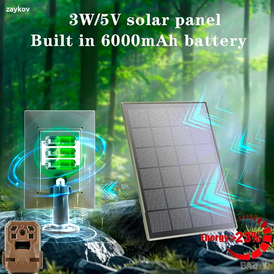 соларен панел 3W/5V, вградена батерия 6000mAh, IP66, Type-C/Micro