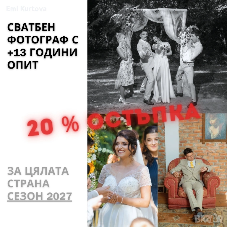 Не чакайте последния момент! С колегата ми имаме имаме резервирани дати за 2027 г. Свържете се с мен за безплатна консултация и нека планираме вашата незабравима сватба заедно.