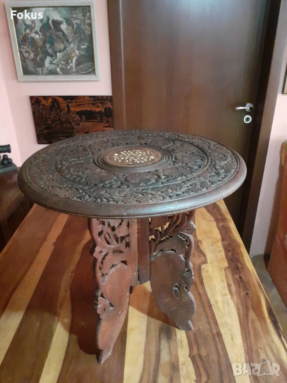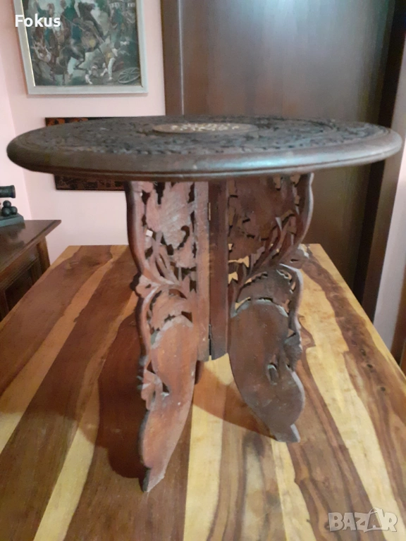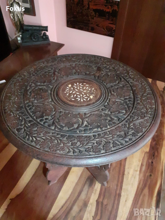 Стара масичка дърворезба с инкрустации от седеф → Обява 53355862