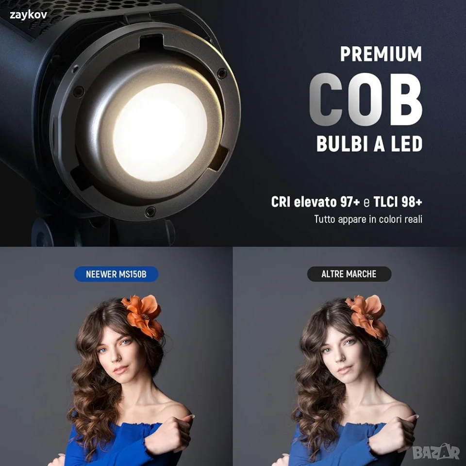 Преносима мини лампа COB: NEEWER MS150B е преносима лампа с двуцветна мощност 130 W, тегло 980 g и размери 19,5 x 9,5 x 8 cm. Предлага температура на цвета от 2700 K-6500 K и максимум 200 000 lux/0,5 m. Изхвърлете 12 специални ефекта, CRI97+ élevé et TLCI98+, pour des couleurs vives et des scenènes de prize de vue réalistes. L'éclairage équilibré à la lumière du jour de qualité supérieure est sans scintillement de 1/2000 s. La poignée inclinable à 180° est facile à utiliser à la main