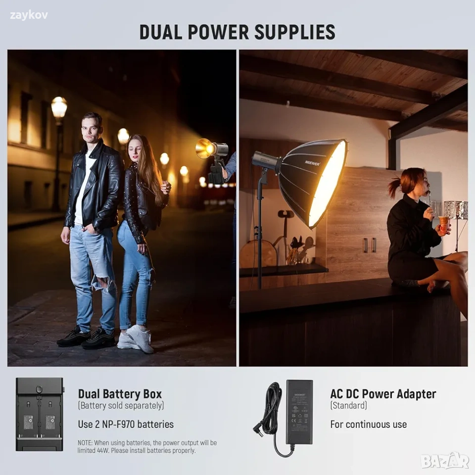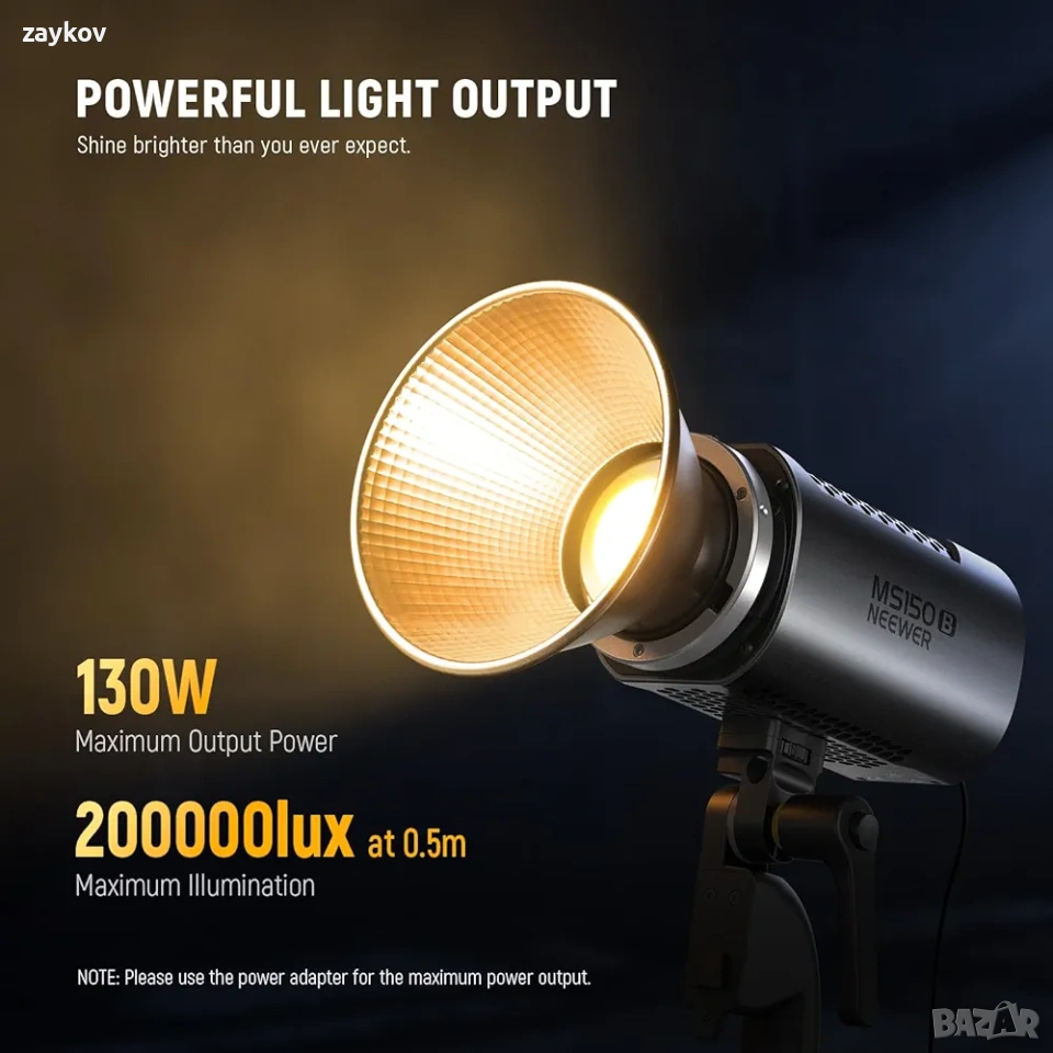 Adaptateur de montage Bowens pour modificateurs de lumière : le support NEEWER exclusif avec support de parapluie peut connecter des boîtes à lumière, des parapluies de photographie, des plats de beauté et d'autres modificateurs d'éclairage grâce à l'adaptateur de montage Bowens включено допълнение (включен стандартен отражател NEEWER, който не може да се използва с адаптор за монтаж на Bowens). Подходящ за портрети, снимки от сеанси, подкасти, интервюта, регистрация на видео в YouTube/TikTok, турне, стрийминг директно и фотография в студио