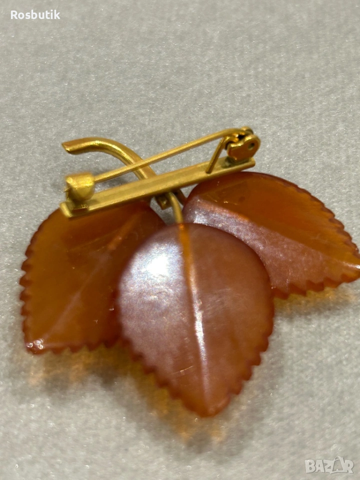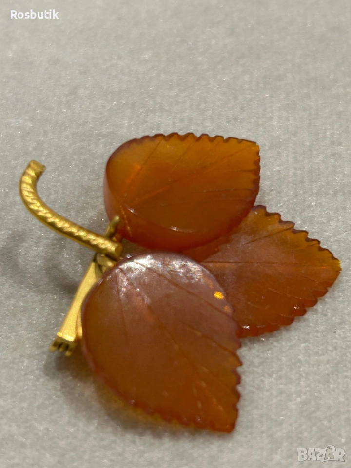 Старинна съветска рядка брошка с кехлибар Листо → Обява 53355899