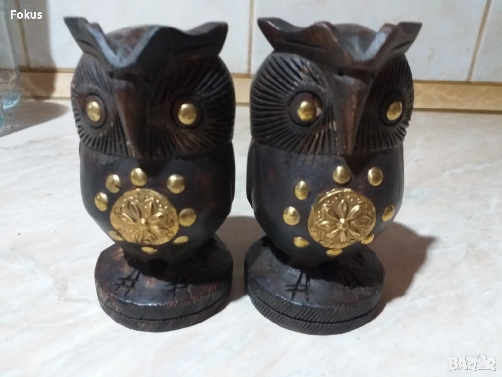 Лот бухалчета совички дърво и месинг → Обява 53355911