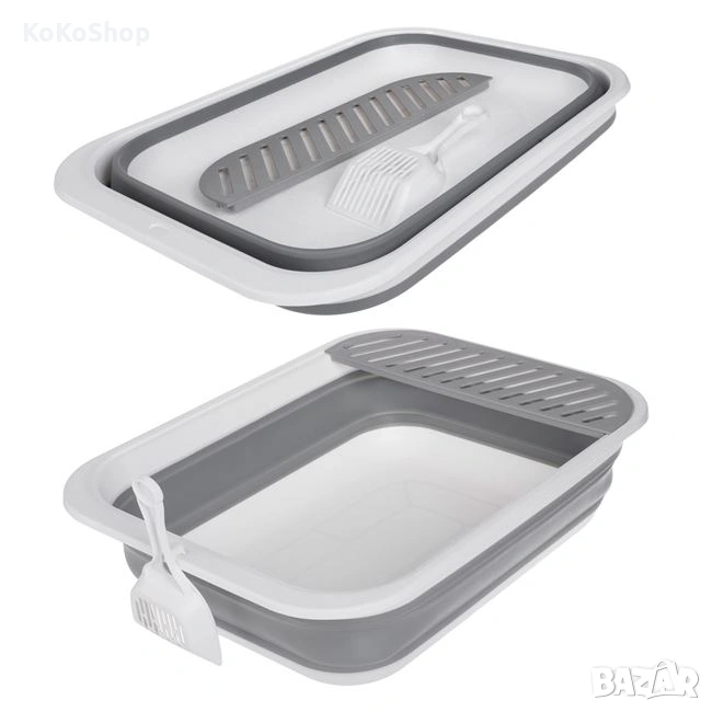 котешка тоалетна, сгъваема котешка тоалетна, котешка тоалетна с лопатка, компактна котешка тоалетна, тоалетна за котка, аксесоари за котки, котешки принадлежности, практична котешка тоалетна, удобна котешка тоалетна, подарък за котка, домашни любимци, котешки продукти