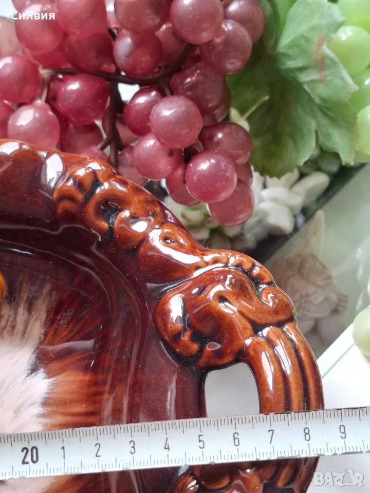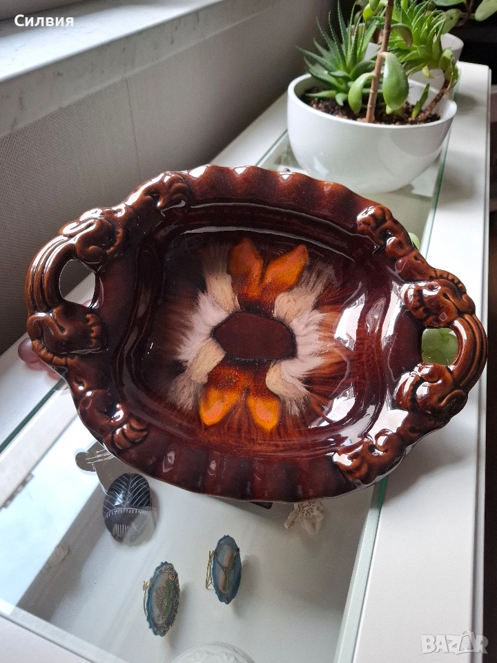 Открийте вечната красота на керамиката JASBA от средата на века! Тази очарователна купа ще стои красиво, където и да я поставите ೋ🌷 ೋ🌷 ೋ🌷. Оставете се да бъдете съблазнени от уникалния чар на това ръчно изработено произведение. Със своя отличителен мотив в топли и земни тонове, елегантен дизайн, тя излъчва елегантност и стил. Перфектна е за любителите на ретро и винтидж естетика. ೋ🌷 ೋ🌷 ೋ🌷 Легендарното качество и майсторска изработка на керамиката JASBA са отразени в това произведение на изкуството, издържало изпитанието на времето. То все още е в отлично състояние, с внимание към детайла и съвършенството. Независимо дали сте любител на антики, колекционер на керамика или просто търсите уникален декор, тази купа за плодове, десерт или друго , ще направи впечатление. Поставете я на видно място в дома си, на масичка за кафе, бюфет или витрина и се наслаждавайте на нейната вечна елегантност всеки ден. Размерите ги има в снимки. Цена 2️⃣8️⃣€ 55,76лв