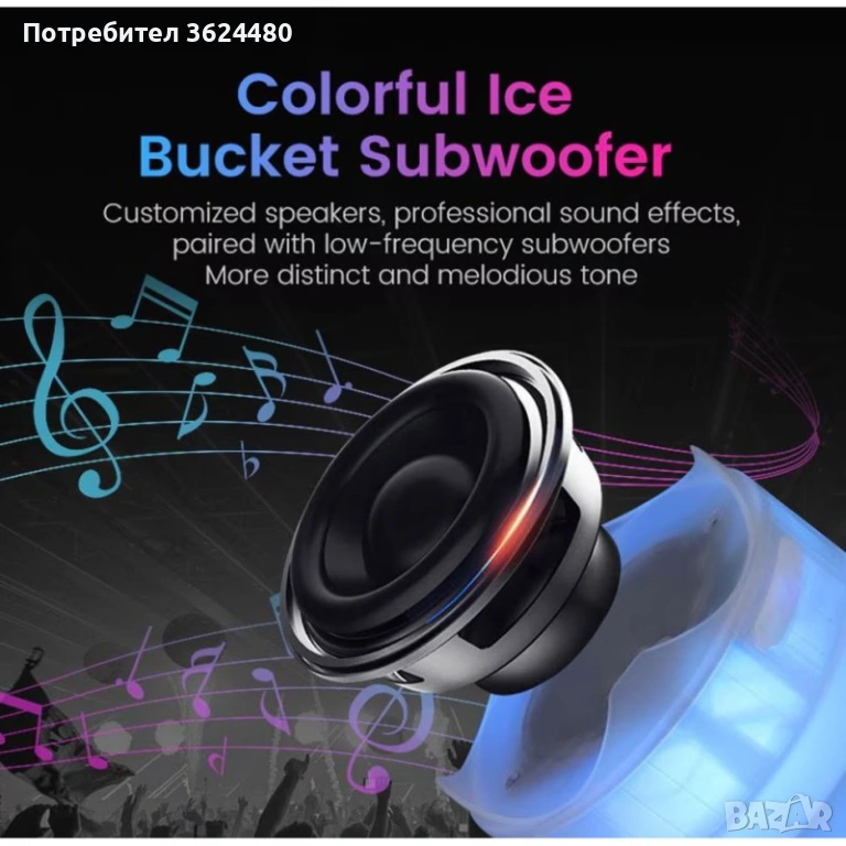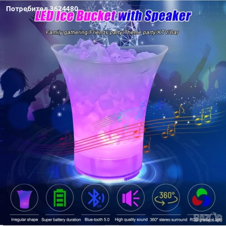 Представяме Ви мултифункционалния охладител за вино и шампанско, който съчетава стил и технология в едно. Тази светеща кофа за лед разполага с голям капацитет от 7 литра, което я прави перфектна за охлаждане на множество напитки едновременно. Технологията Bluetooth 5.0 гарантира бързо и лесно сдвояване, а вградената батерия от 1200mAh позволява на партито да продължи до 4 часа без нужда от захранване. RGB LED модулът превръща ледарката във впечатляващ светещ акцент с 10 светлинни режима.