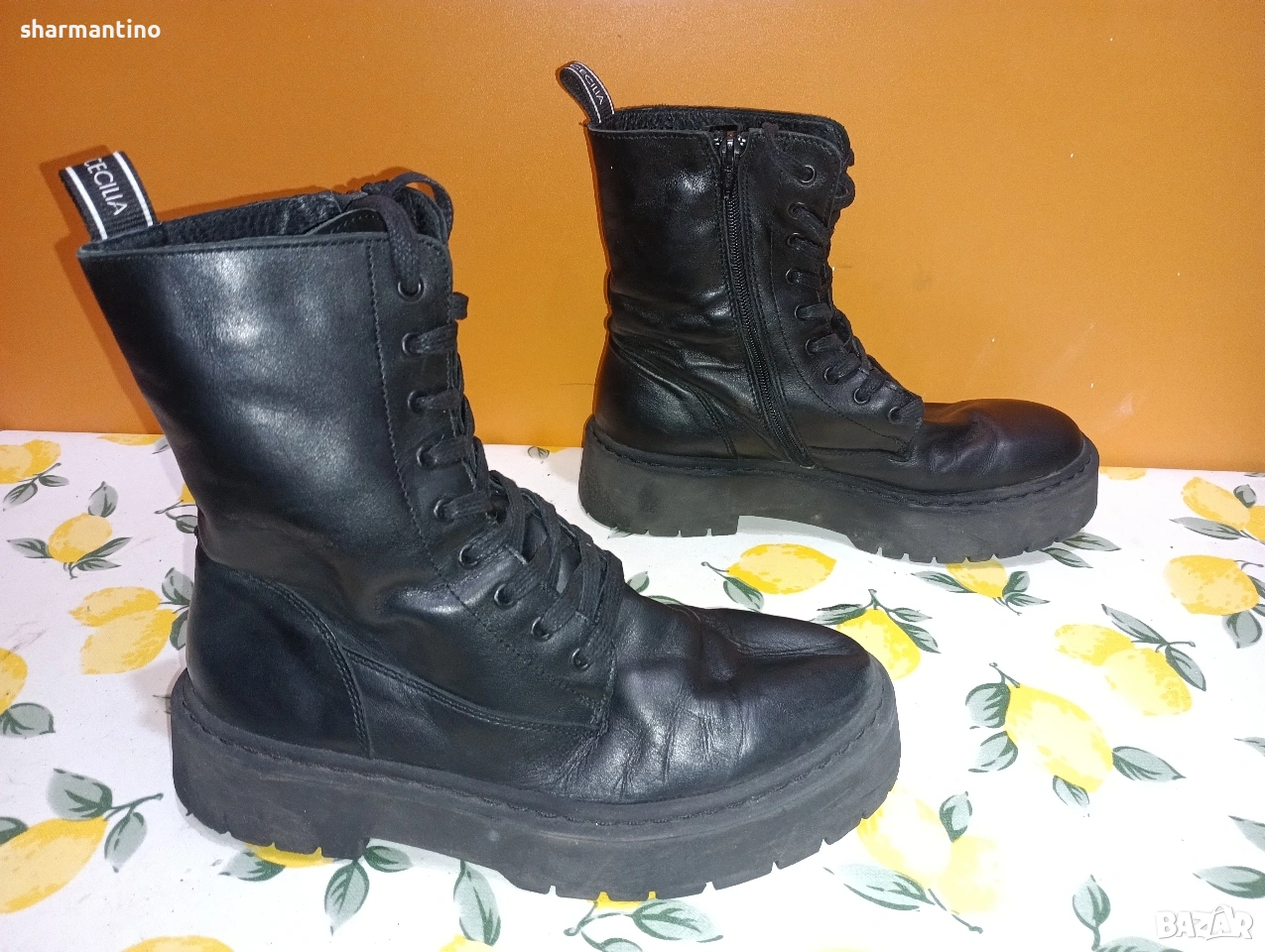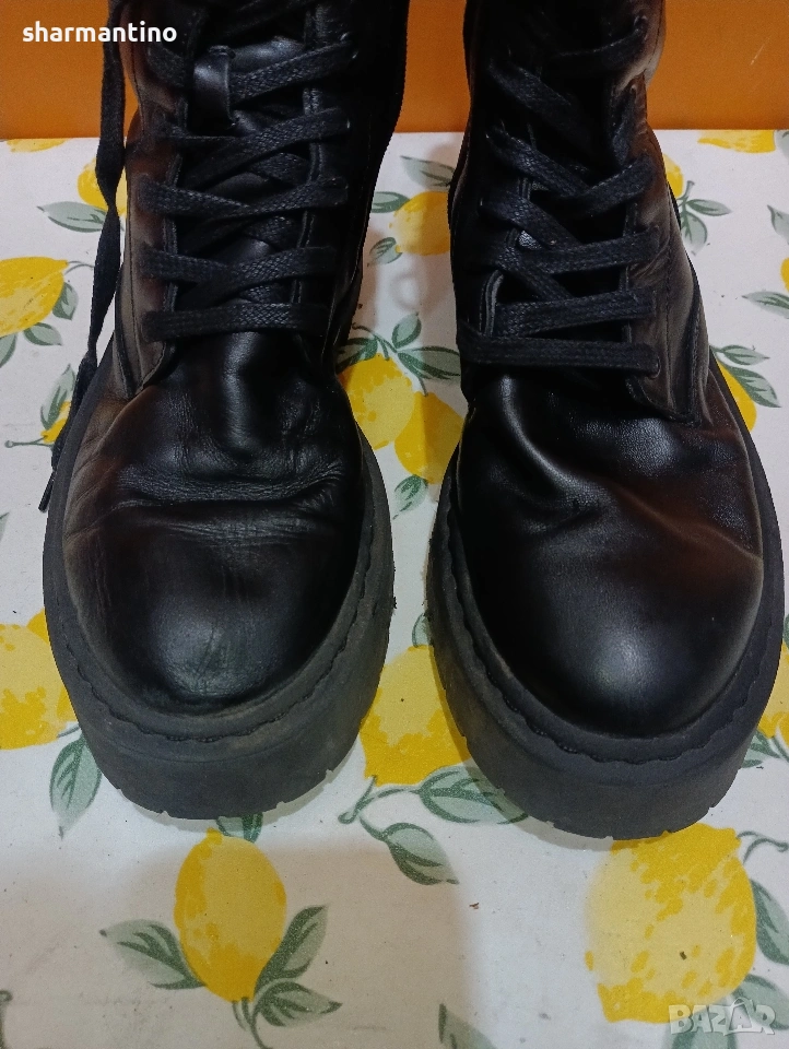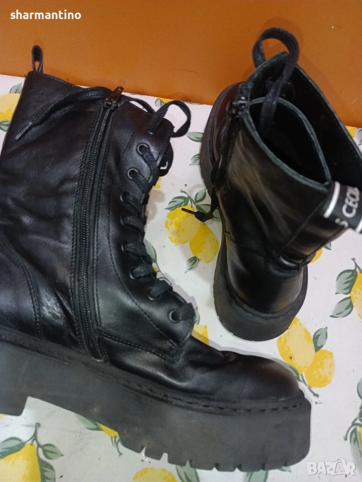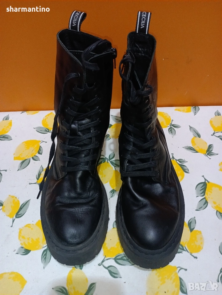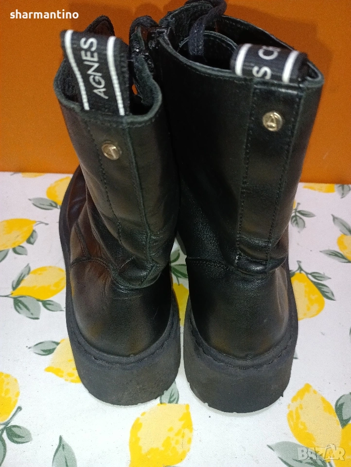 * МАРКА/МОДЕЛ - маркови оригинални кожени високи боти / кубинки Agnes Cecilia. С връзки и с цип.