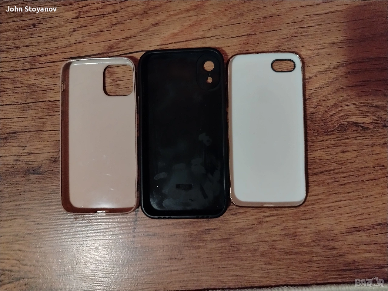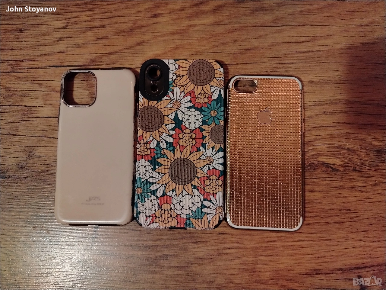 Продавам калъфи за айфон. Първите 2 са използвани а този последния (златния) е чисто нов. Цената е за всички калъфи
