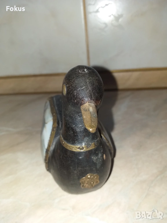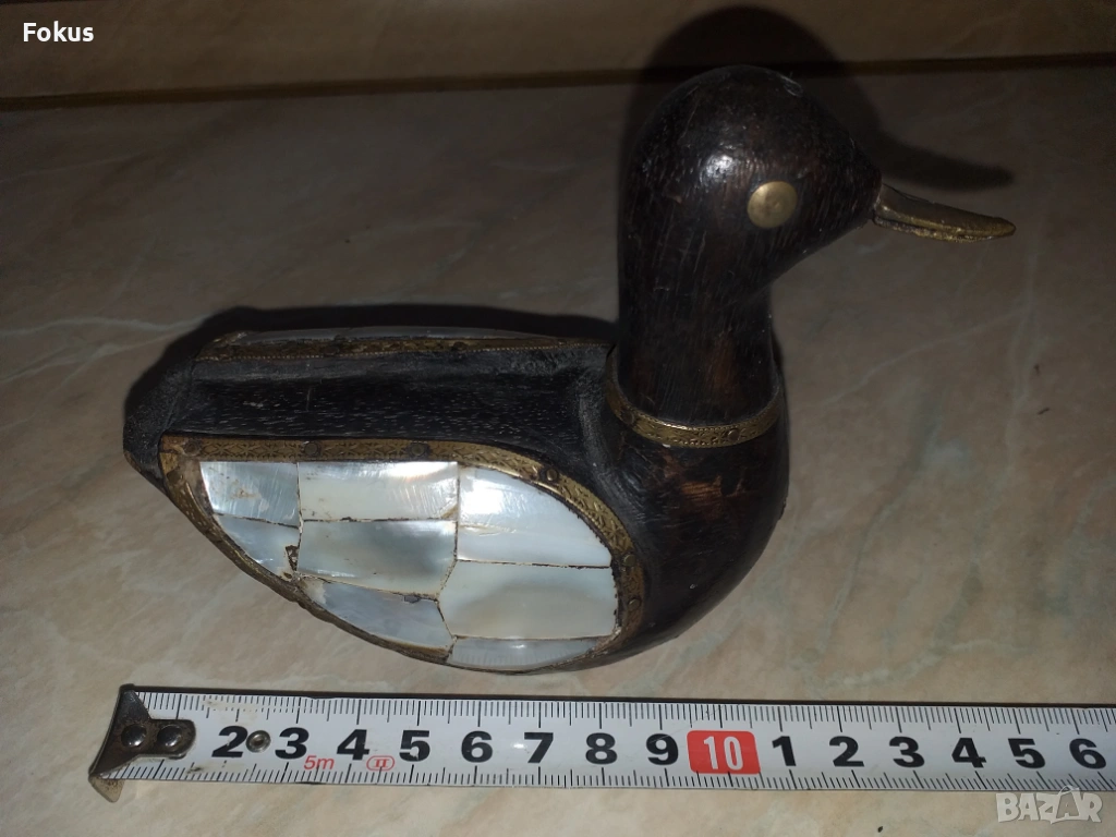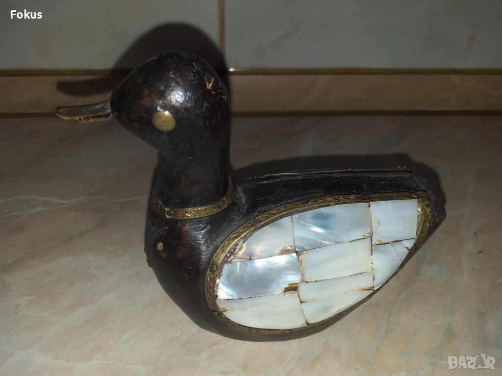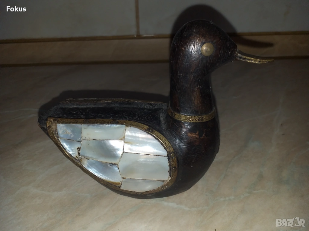 Страхотна дървена патица патка с месинг и седеф → Обява 53356453