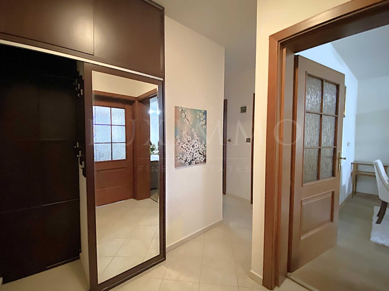 Апартаментът е напълно обзаведен с елегантни италиански мебели, декориран с картини и е готов да посрещне своите нови обитатели. Разпределението включва: