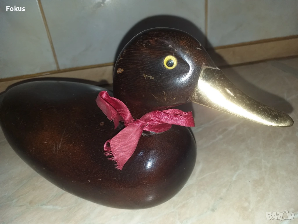 Страхотна стара дървена патица патка с бронзова човка → Обява 53356534