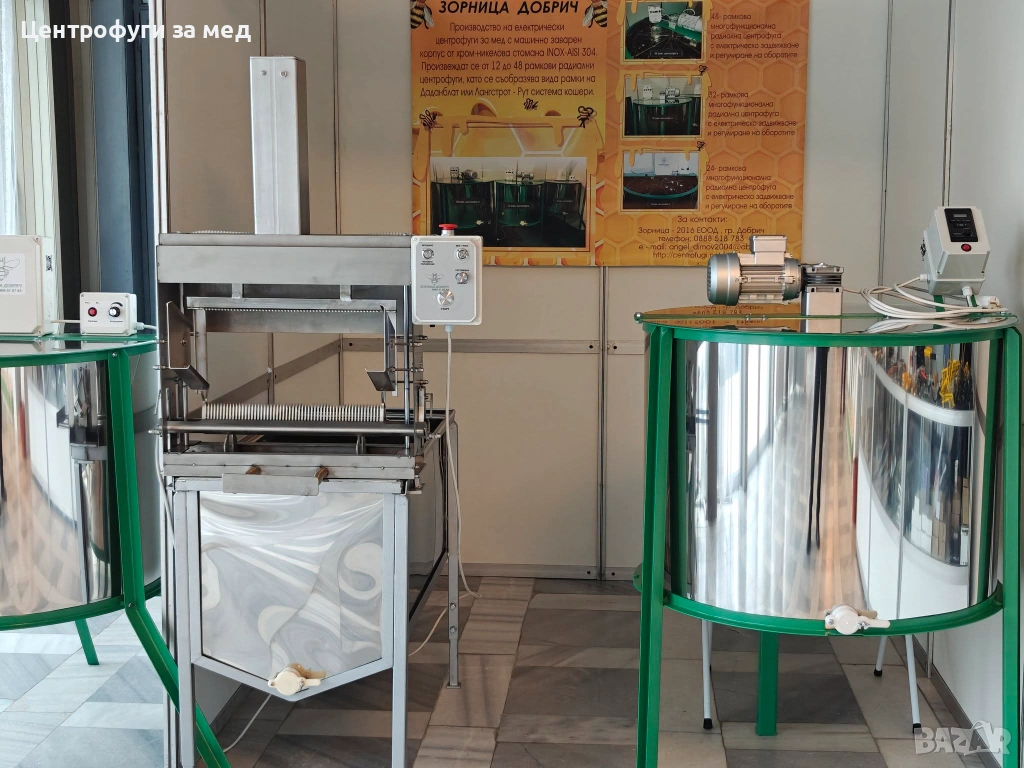 Производство също и на 12,16,20,24 и 48 рамкови електрически центрофуги за пчелен мед. Казаните на всички са машинно заварени от дебела ламарина, неръждавейка, а не закопчани или залепени, добре балансирани ротори също от неръждавейка (кошове), покриващи изискванията за хранително-вкусовата промишленост. Някой от тях могат да бъдат направени да работят на 12в .(акумулатор) а също така и комбинирано на 12 в. и 220 в.