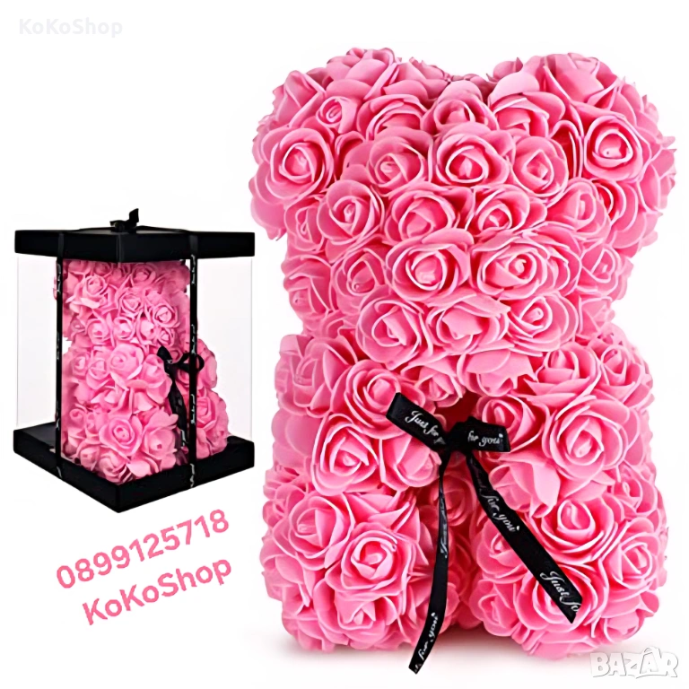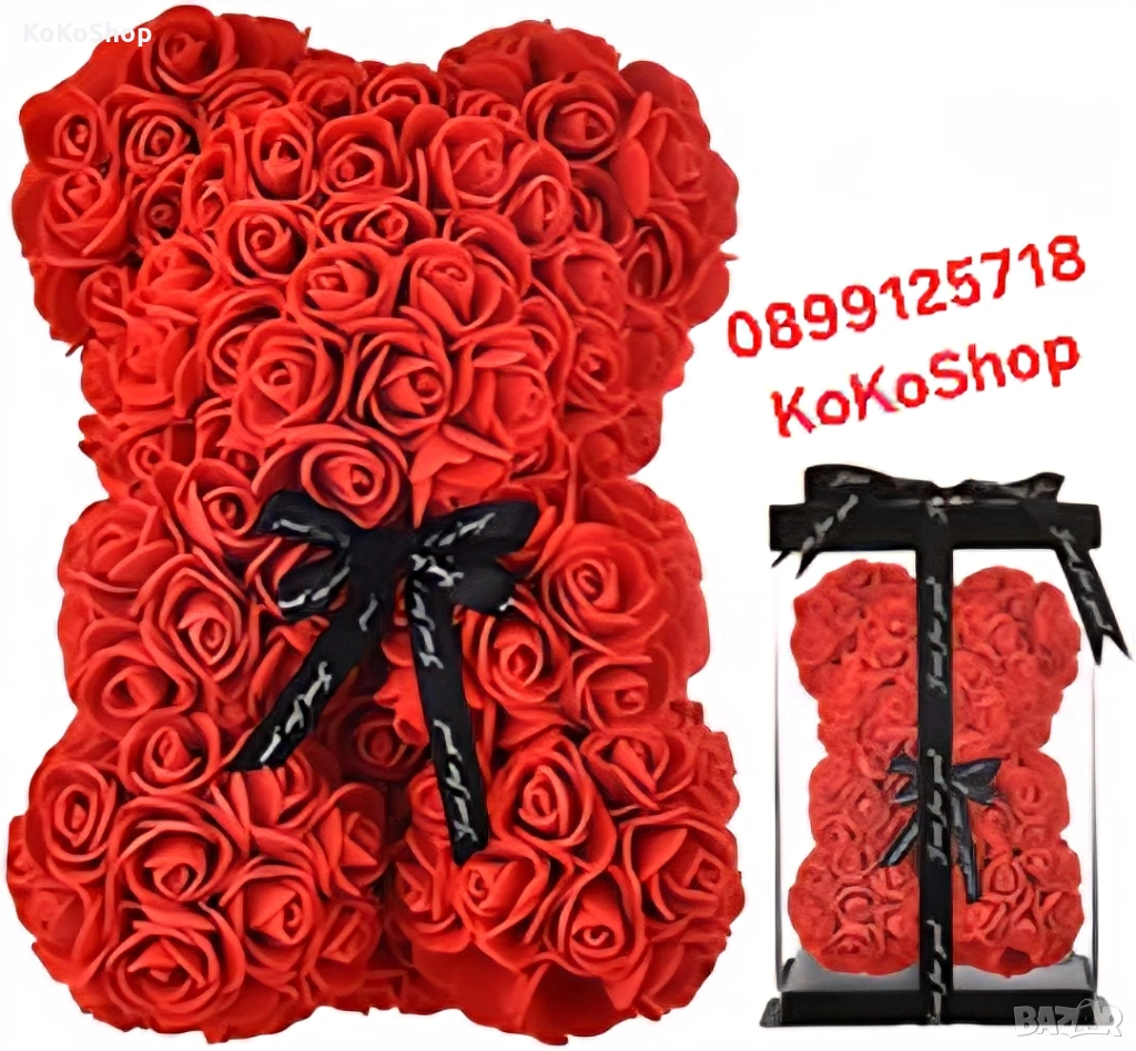 мече от рози, плюшено мече с рози, луксозна кутия, романтичен подарък, Св. Валентин, ръчна изработка, готов подарък, декоративно мече