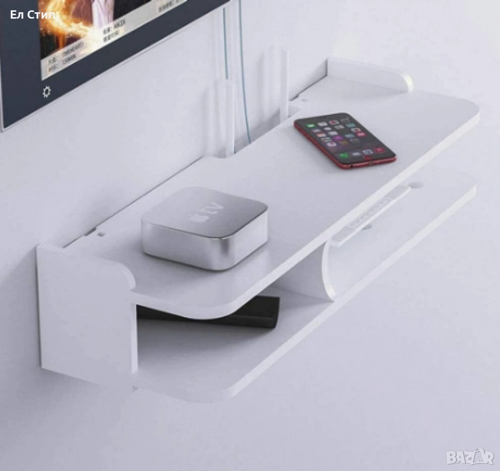 Стенната етажерка е практично и стилно решение за организиране на рутери, зарядни устройства, дистанционни управления и други дребни електронни аксесоари. Благодарение на компактния си и модерен дизайн, тя се вписва във всеки интериор, без да заема излишно място. Подходяща е за монтаж под телевизори или в близост до контакт, като осигурява подредена и функционална зона.