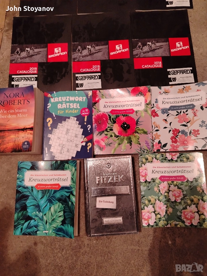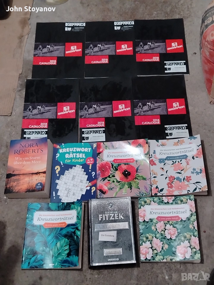 Продавам немски кръстословици и английски каталози за велосипедни части и факти. Не съм ги използвал просто са стояли и не съм ги чел иначе мисля че ще е интересно. Цената е за една книга